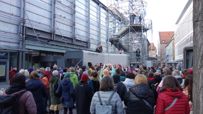Mit dabei waren auch die Desirenen, der Ohm-Chor und der indiekneipechor. Es waren trotz Wahl und Februarwetter viele Menschen da.